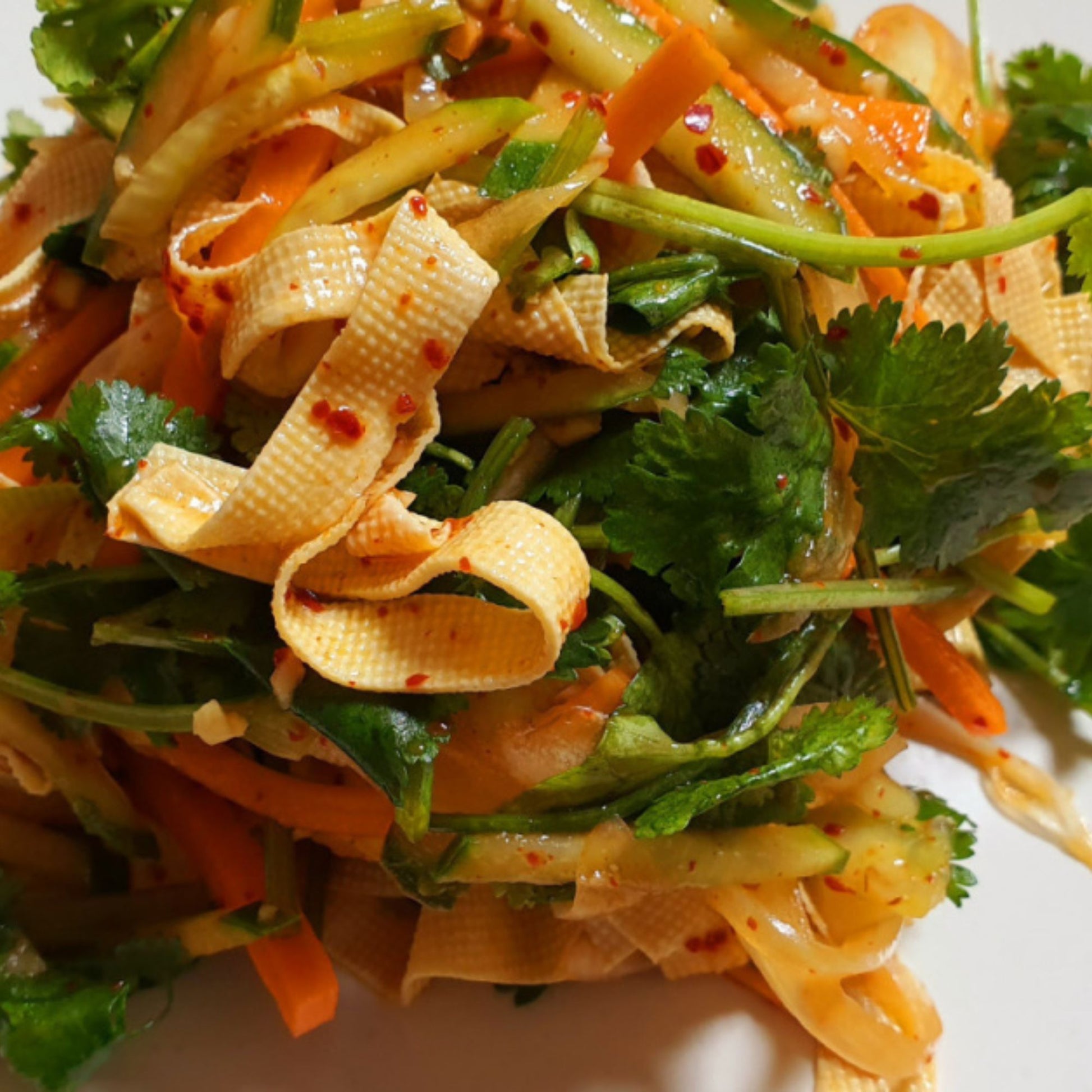 La piel de tofu se elabora secando la capa delgada que se forma al hervir leche de soya Es un ingrediente tradicional en la cocina china utilizado ampliamente en platos salteados guisados y hot pot