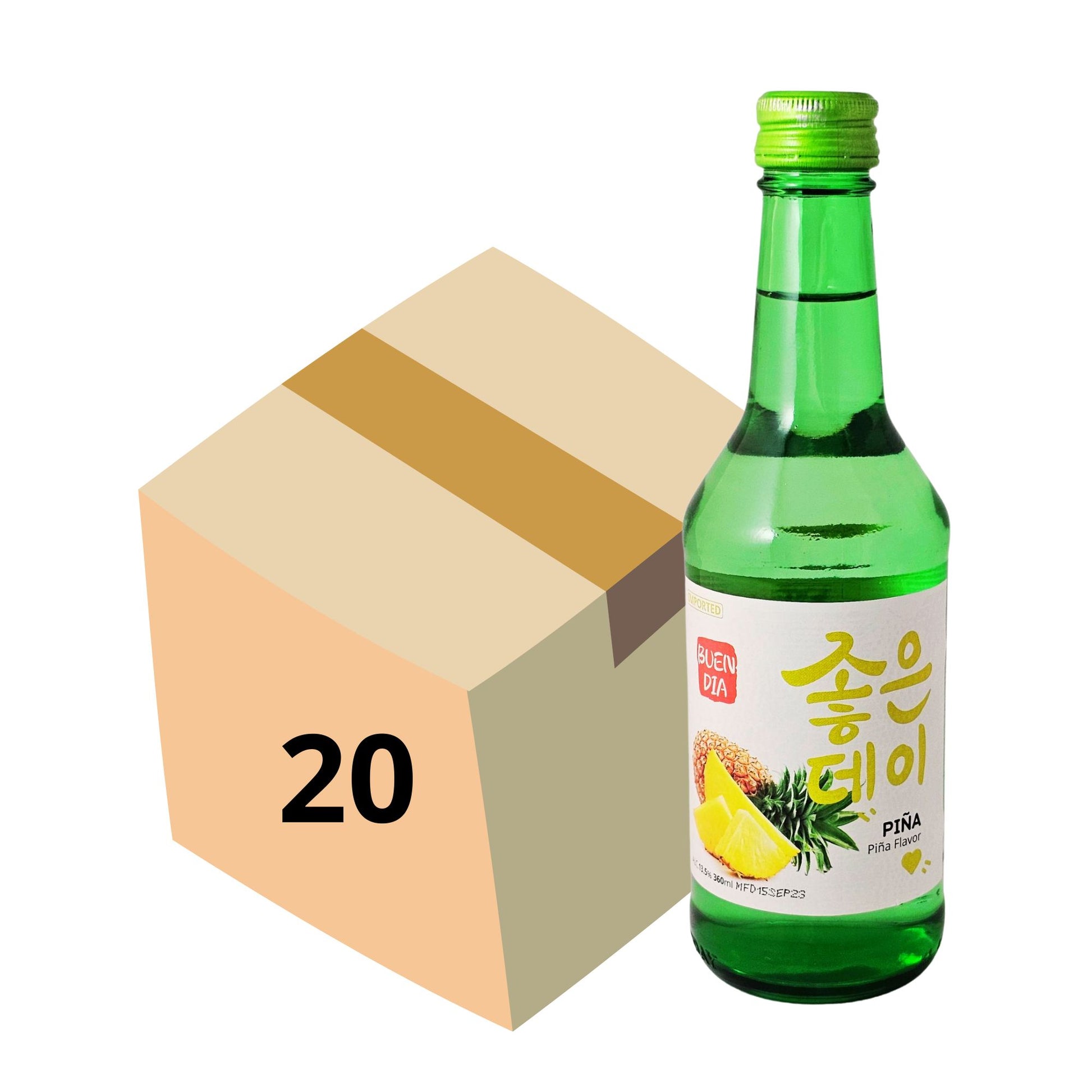 1 Caja de 20 Botellas Bebida Coreana Licor de Arroz Buen Día Soju Sabor de Piña 350 ml